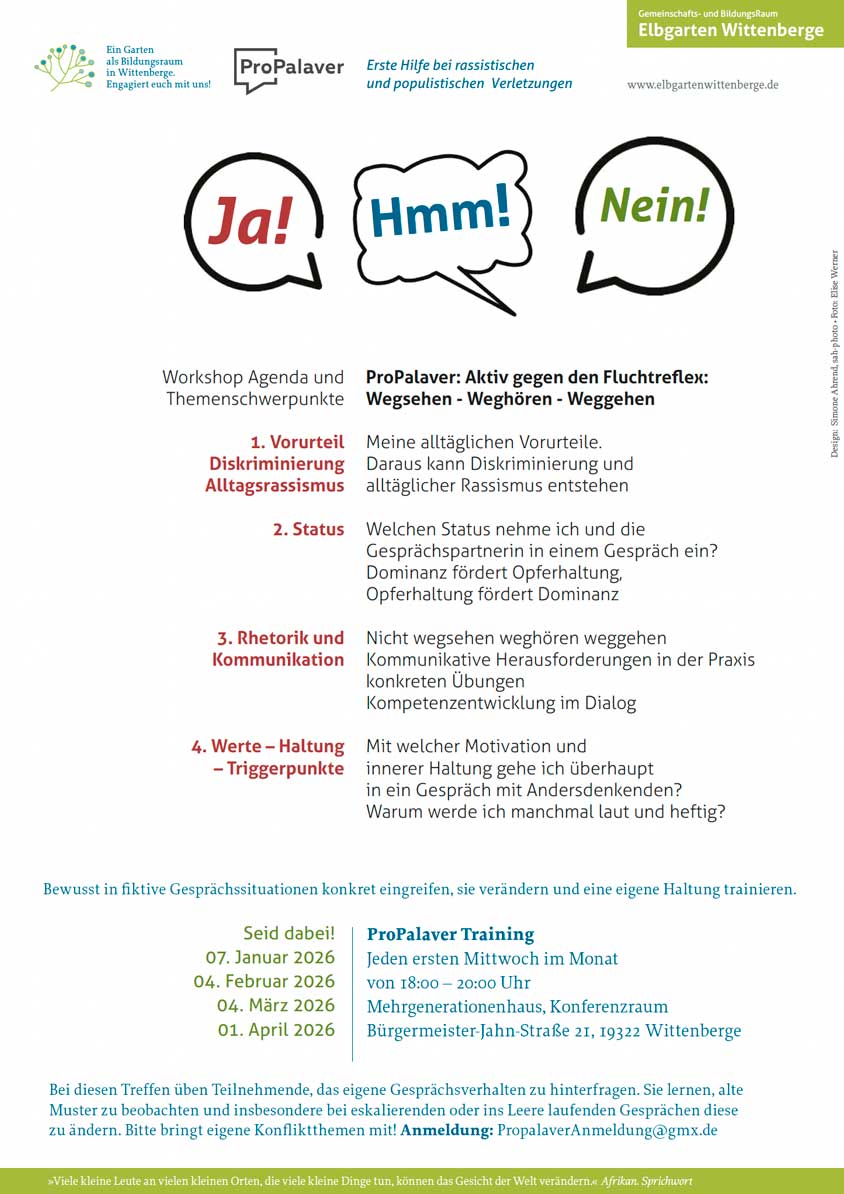 Organisiert vom Gemeinschafts- & BildungsRaum Elbgarten Wittenberge e.V. und gefördert im Rahmen des Bundesprogramms „Demokratie Leben!“.