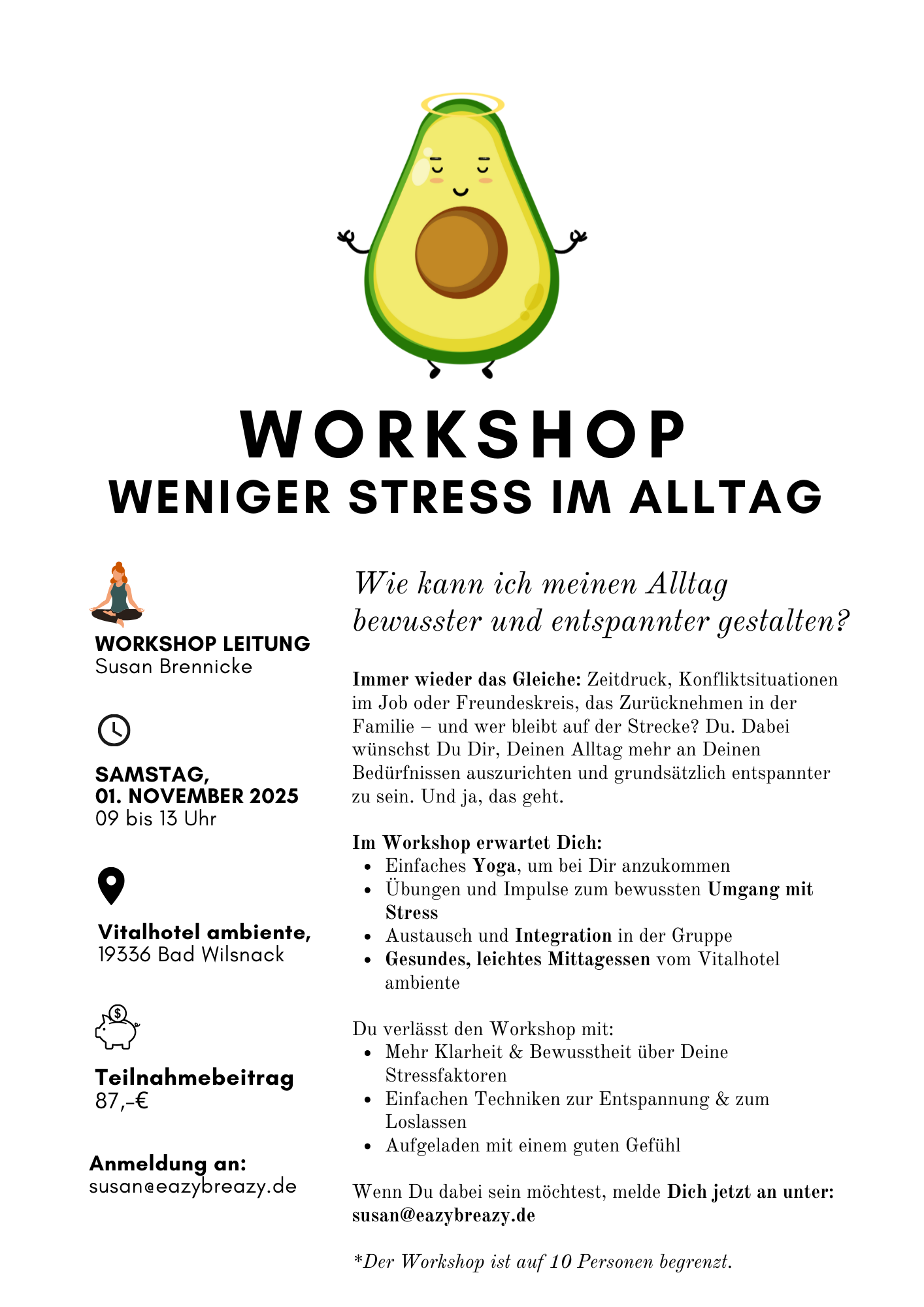 Jetzt anmelden: Wenn du dabei sein möchtest, sende eine E-Mail an: susan@eazybreazy.de